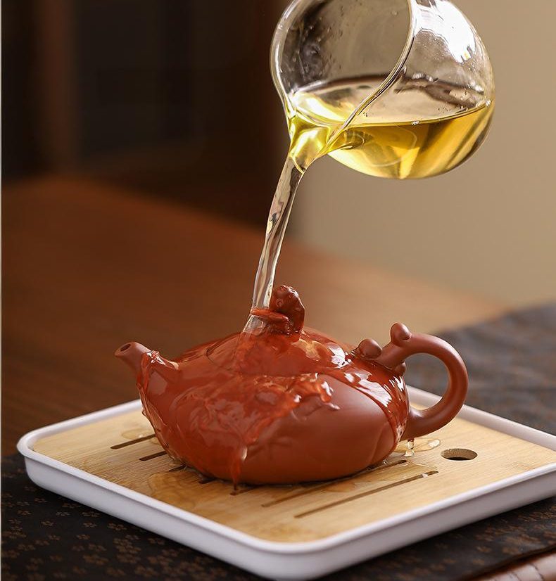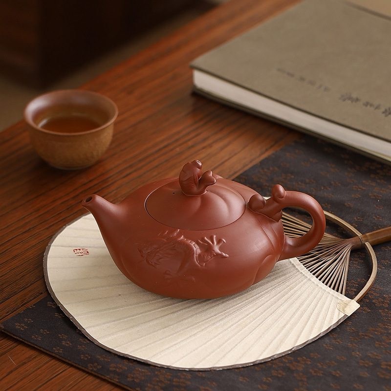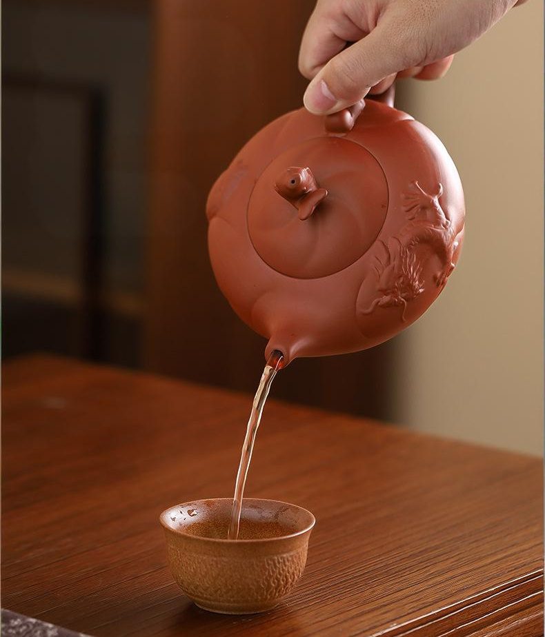 Elevate your gongfu cha ritual with this authentic Yixing teapot, a masterpiece of Chinese ceramic artistry born from the ancient clay beds of Jiangsu. Unlike Tenmoku Teapot traditions, which rely on glossy glazes, this handmade teapot is crafted from unglazed zisha clay—a porous, iron-rich mineral that absorbs tea oils over time, deepening flavor and developing a luminous patina with every brew. Meticulously shaped by master artisans, its dragon-inspired spout and handle, paired with a mythical beast adorning the lid, embody the harmony of power and grace, transforming your kung fu tea ceremony into a living dialogue with heritage.